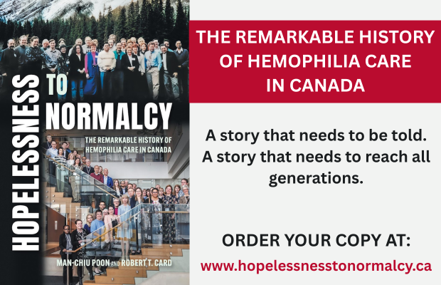 You can also access an interesting commentary from Dr. Kelsey Uminski, medical director at the Southern Alberta Rare Blood and Bleeding Disorders Comprehensive Care Program (Foothills Medical Centre), and Dr. Adrienne Lee, medical director at the Adult Bleeding Disorder Program of BC (St. Paul’s Hospital) in Haemophilia: A Story Worth Telling: The Evolution of Haemophilia Care in Canada – Uminski – Haemophilia – Wiley Online Library.